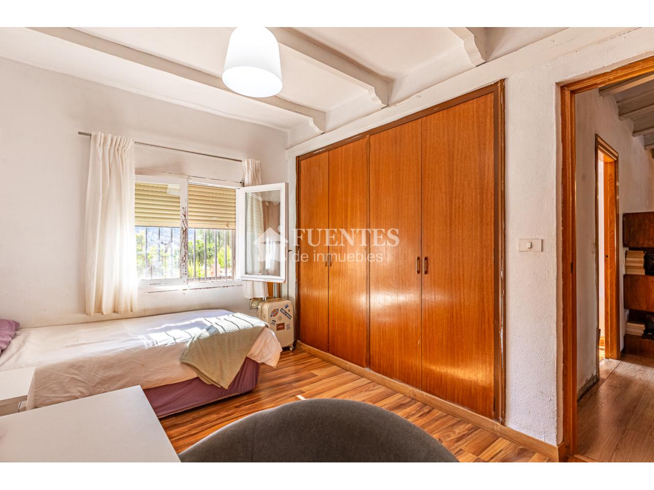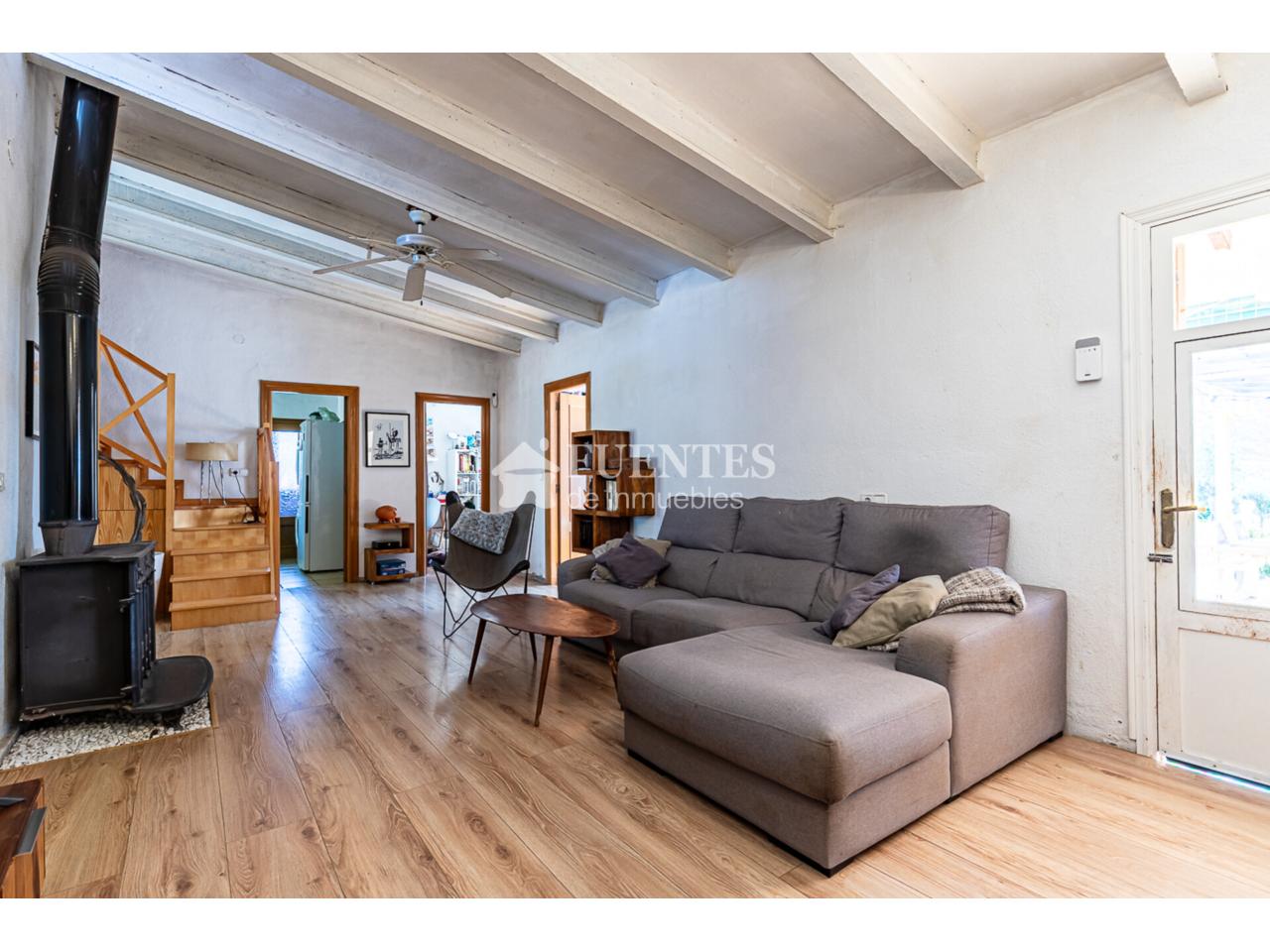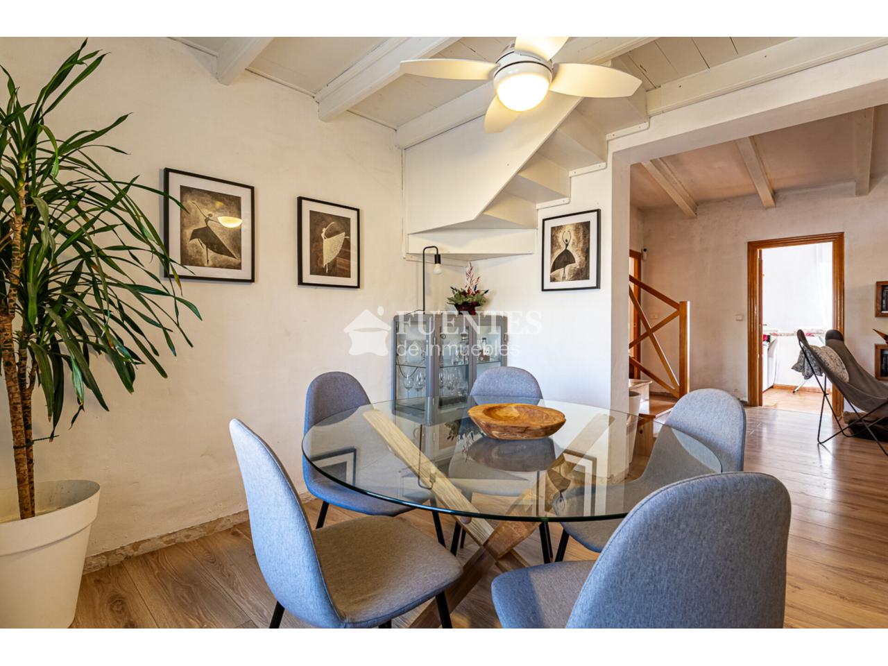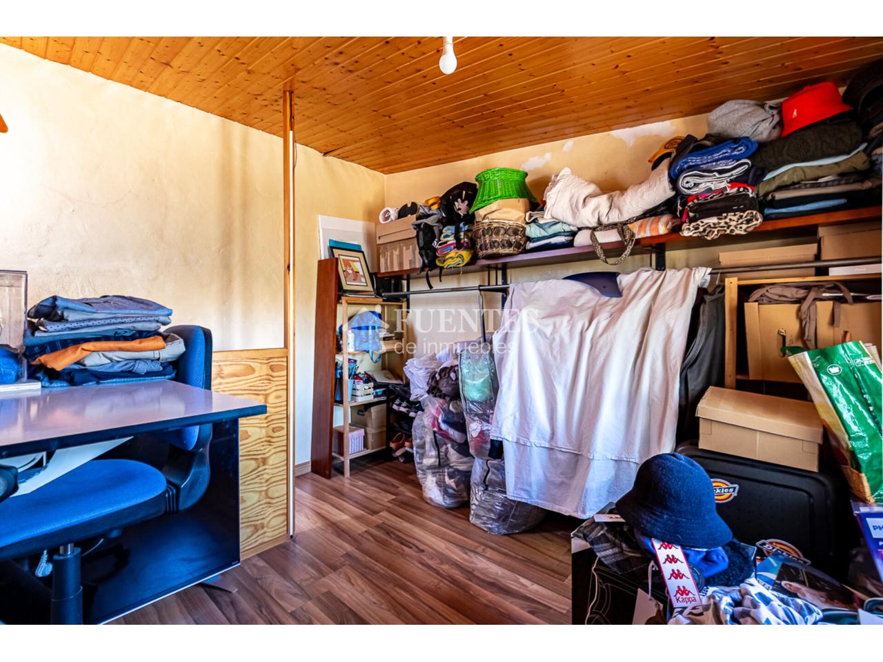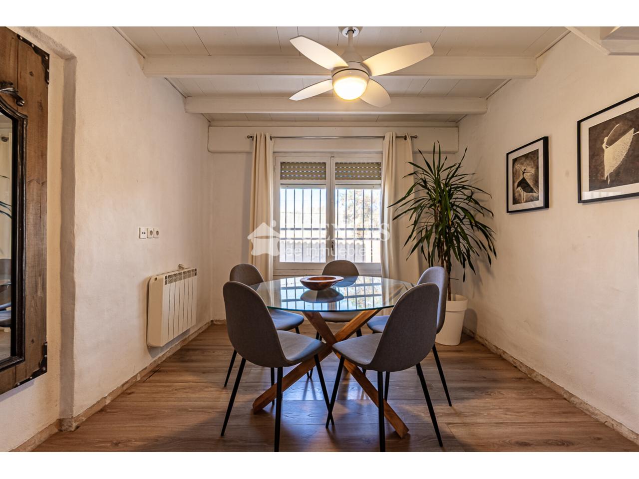 En uso y bien conservado con alguna mejora, la vivienda se compone de amplio salón comedor con chimenea y comedor (antes dormitorio), muy luminoso y amplio con techos amplios y vigas vistas.