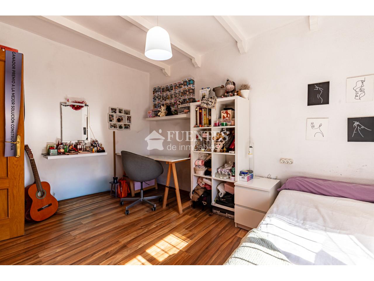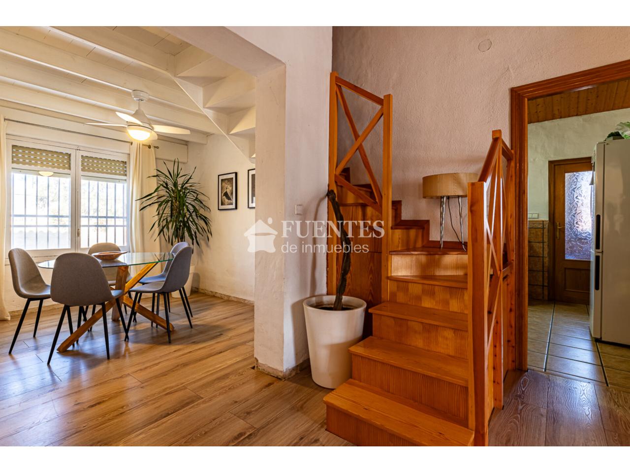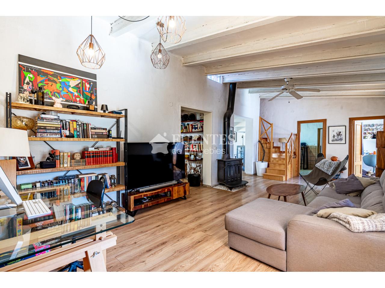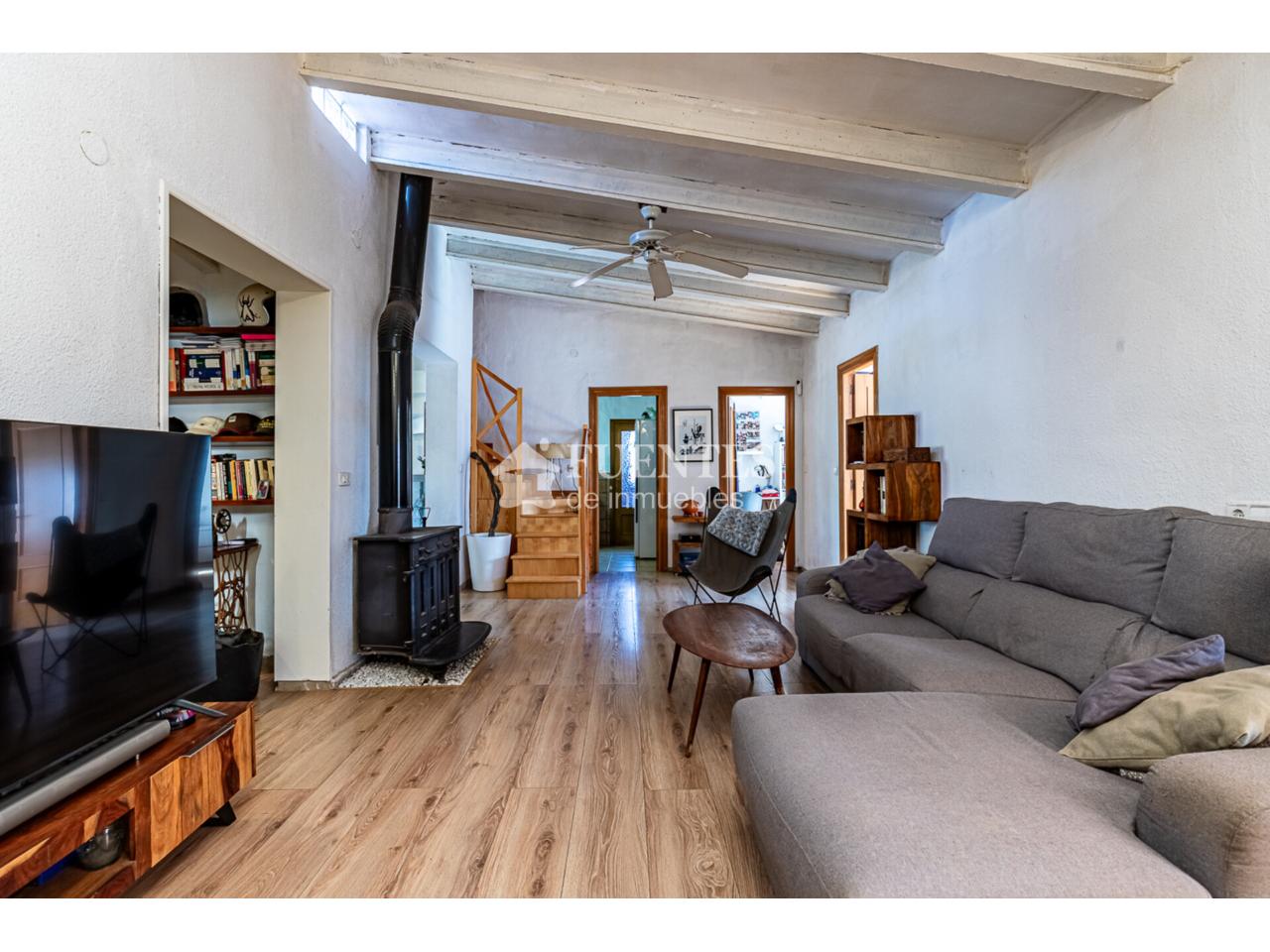 En uso y bien conservado con alguna mejora, la vivienda se compone de amplio salón comedor con chimenea y comedor (antes dormitorio), muy luminoso y amplio con techos amplios y vigas vistas.