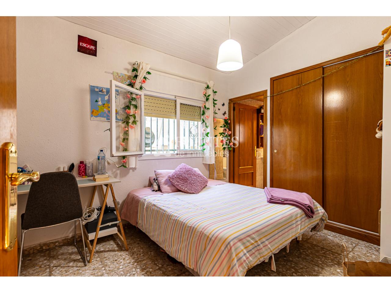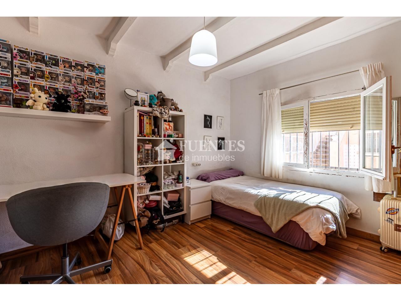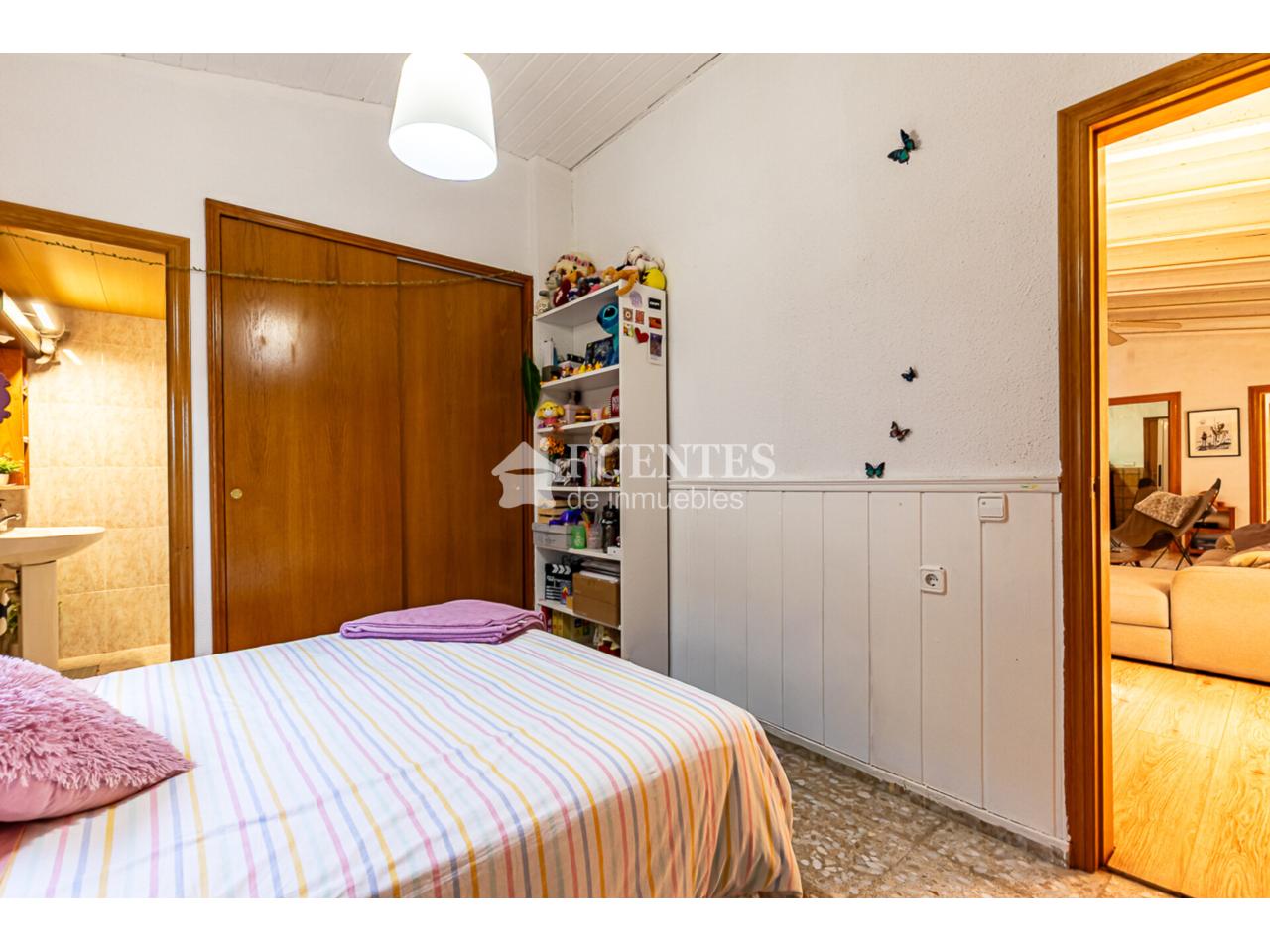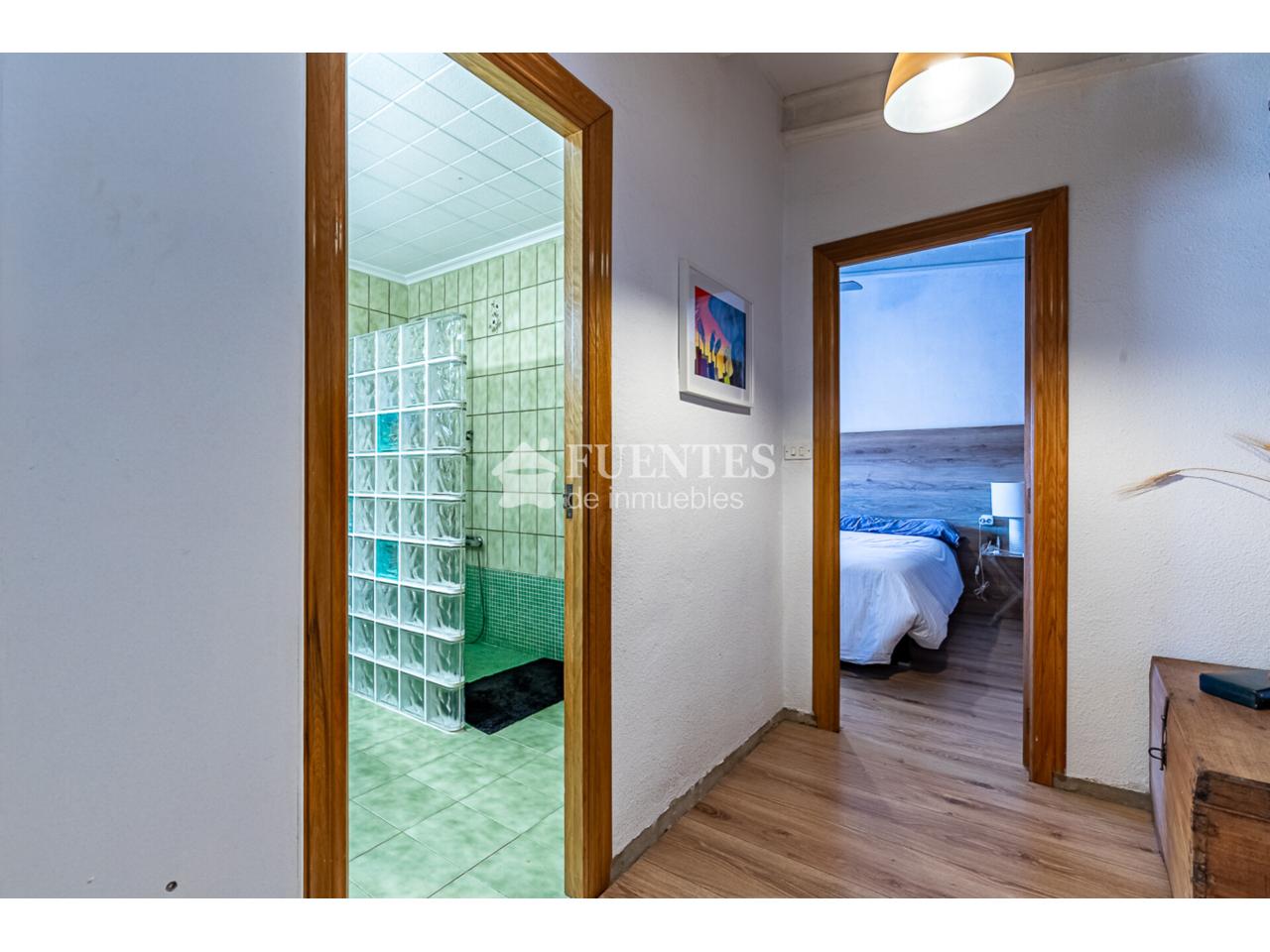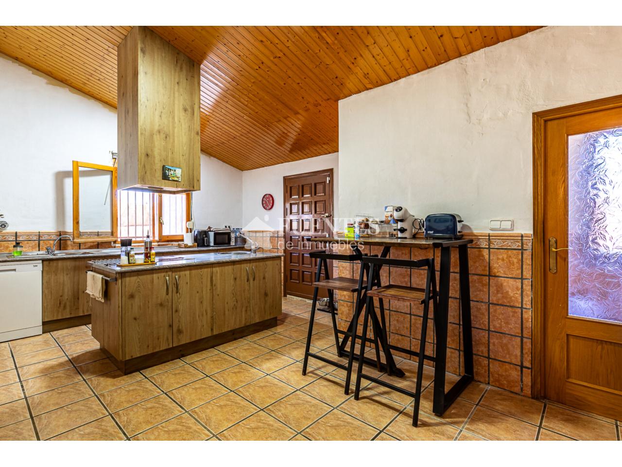 En uso y bien conservado con alguna mejora, la vivienda se compone de amplio salón comedor con chimenea y comedor (antes dormitorio), muy luminoso y amplio con techos amplios y vigas vistas.