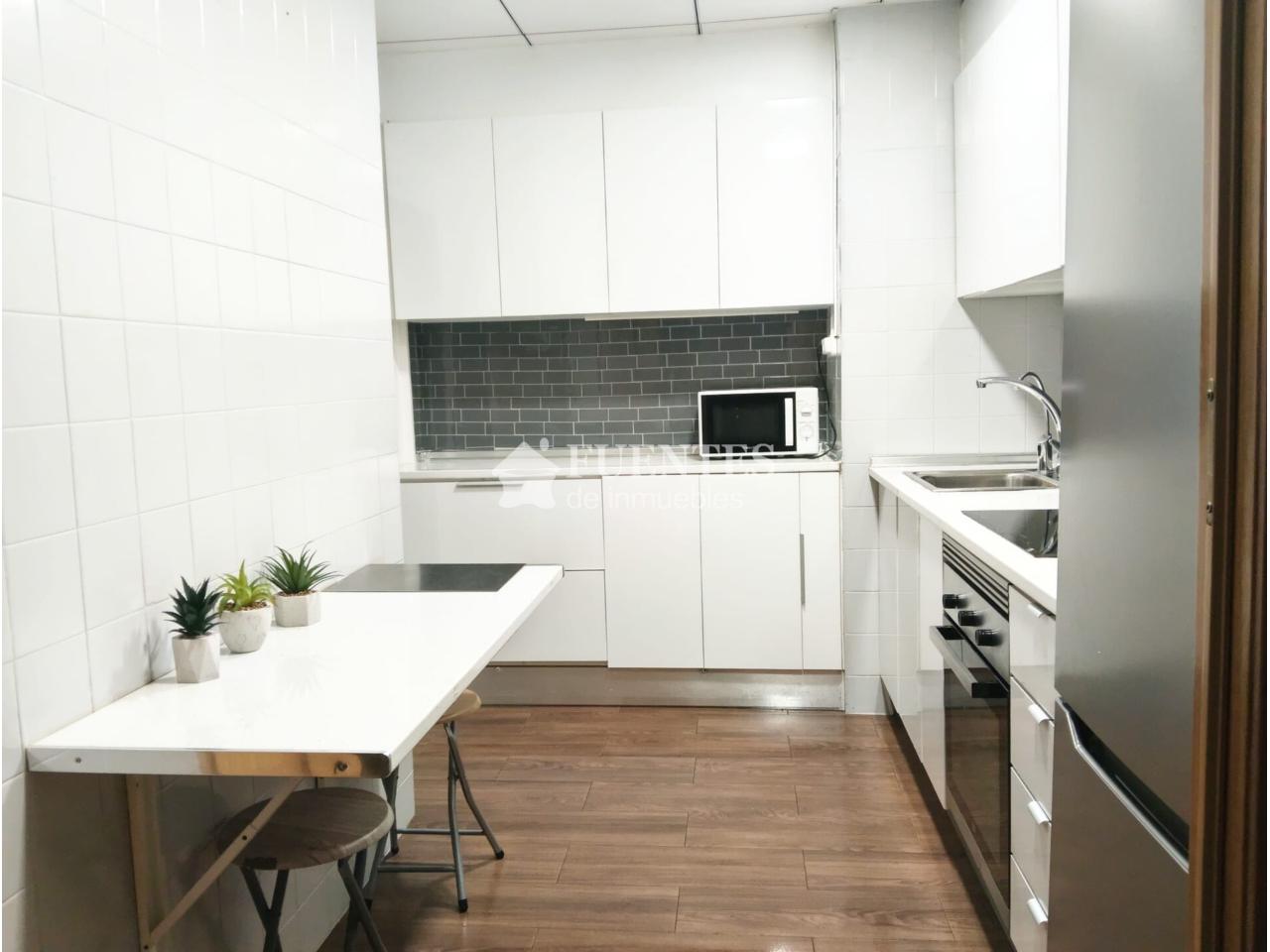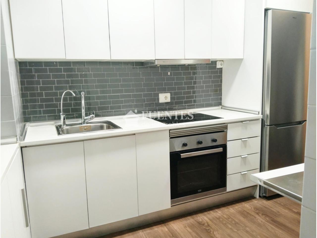 Cocina moderna y amplia con salida a una galeria amplia y acristalada como lavadero